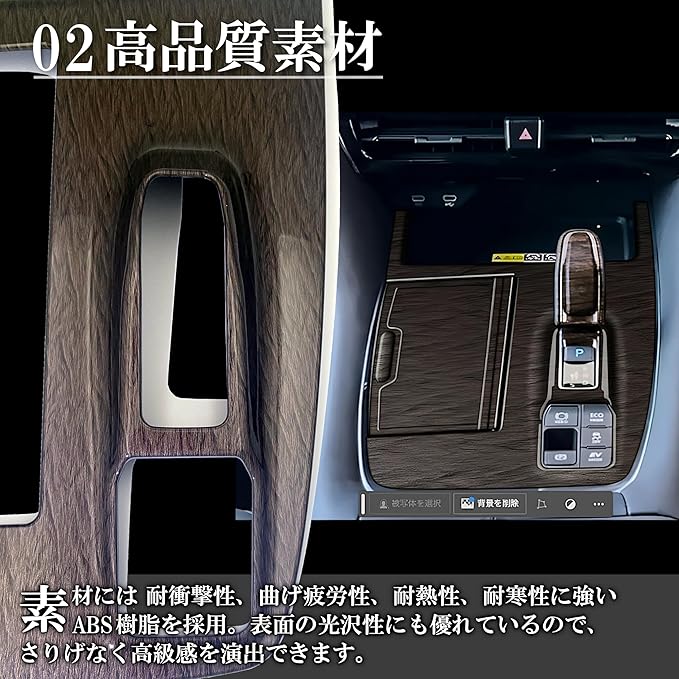 【究極のラグジュアリー感をアルファード&ヴェルファイアに!】新型アルファードとヴェルファイア40系専用の木目調シフトパネルカバー&シフトノブカバーセットで、内装を極上の豪華空間に。美しい木目調デザインが、ワンランク上のプレミアム感を実現。まるで高級ラウンジのような車内空間を演出します。