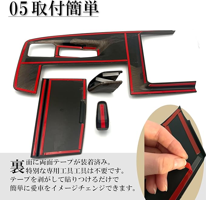 【取付ポイント】取付前に必ず仮合わせを行い、取付面の油分や汚れをしっかり落としてください。車内を15度以上に温めてから取り付けをするとはがれにくいです。粘着力が弱い場合は、両面テープ等で補強することをお勧めします。
