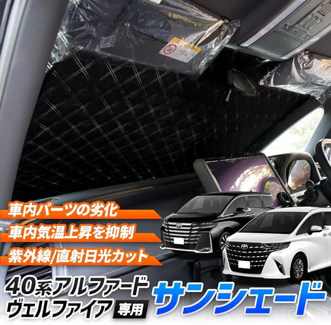 【車種専用設計】 専任スタッフが何度も微調整を行い商品化した、40系アルファード/ヴェルファイア専用設計サンシェード。 専用ならではのフィット感で確実に外気の影響をブロックします。
