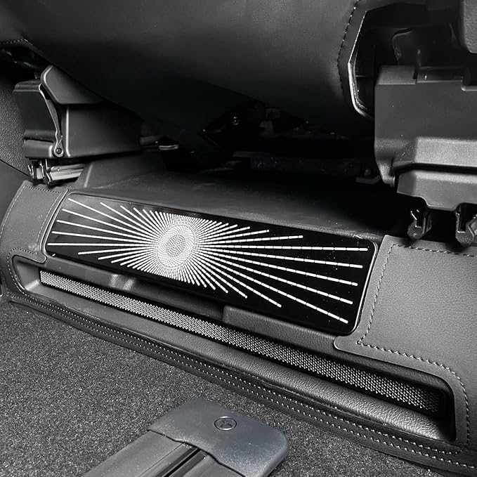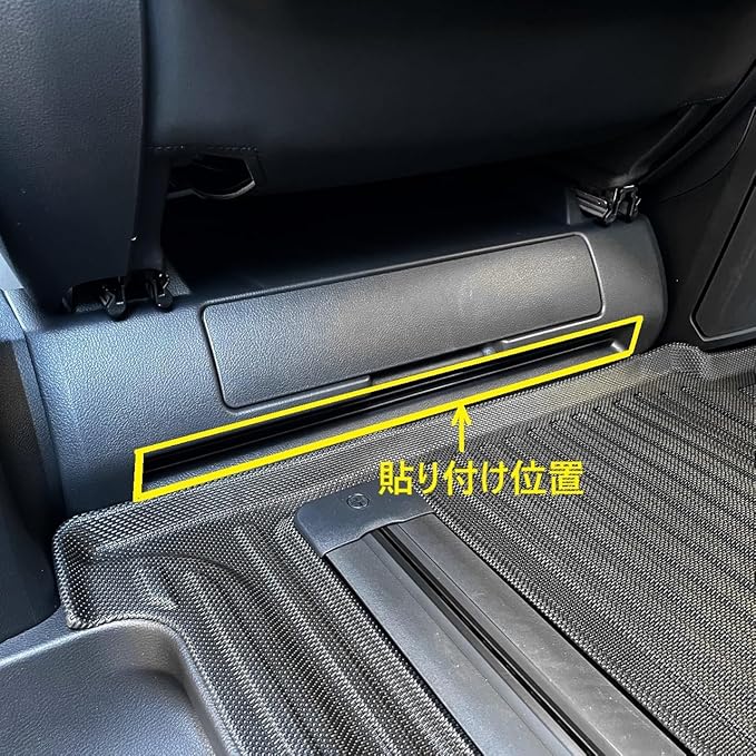 2列目シートの足元の排気口に貼るだけでゴミや小物などが入らないように防止できるメッシュ状のガードパネル、シートバックヒータールーバーパネルです。