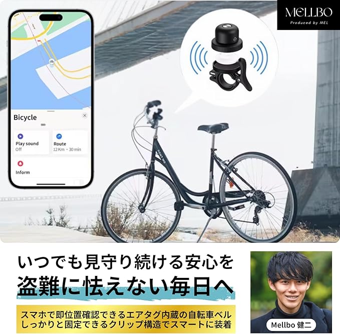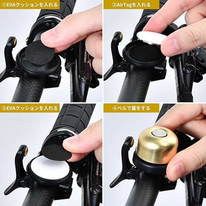 AirTag エアタグ 自転車 ベル 自転車用gps盗難防止 防水 位置をいつでも把握 様々な自転車対応 ブラック