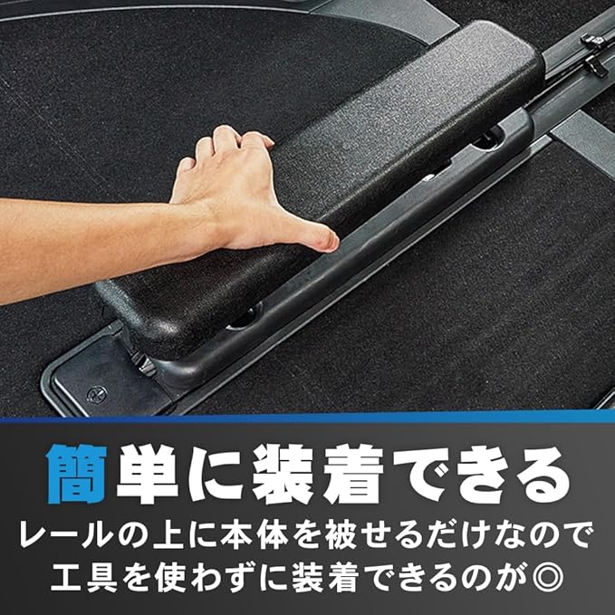 剥き出しになりがちな3列目のレールを傷や汚れから守るシートレールカバーです。シンプルなデザインにより、景観を崩さずスタイリッシュにドレスアップできます。工具不要ではめ込むだけで設置完了です。