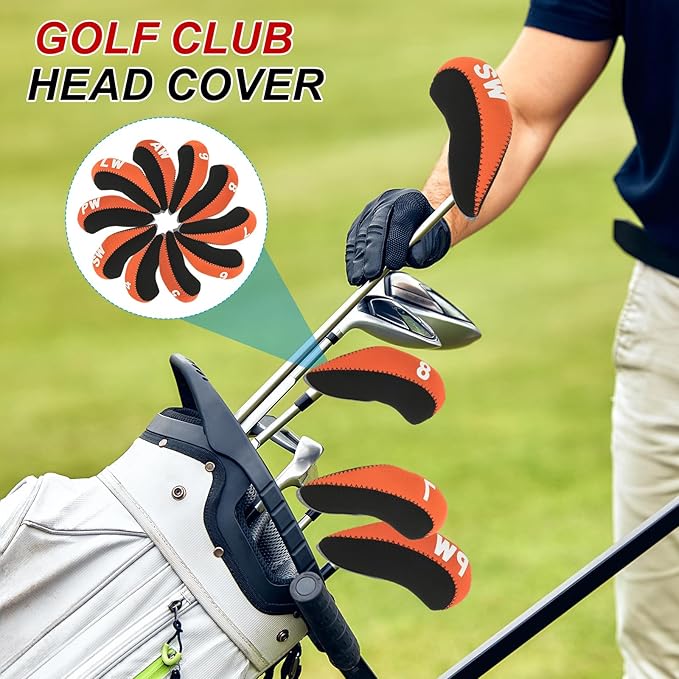 PATIKIL ゴルフクラブヘッドカバー 10個セット ナンバー入りアイアンカバー ネオプレンドライバーカバー ゴルフ愛好者への贈り物 オレンジ/レッド
