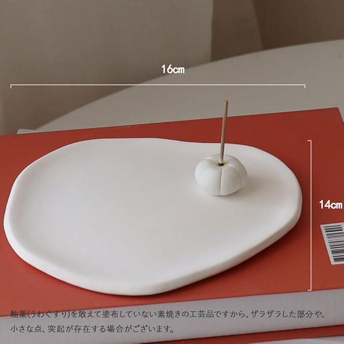 シンプルな陶器製のインセンスホルダーです。不規則な形をした受け皿と、小さなカボチャの香立てのセット。 ミニマルで少しクリエイティブな雰囲気で自然とお部屋にマッチします。リラックスタイムを演出するインテリア。