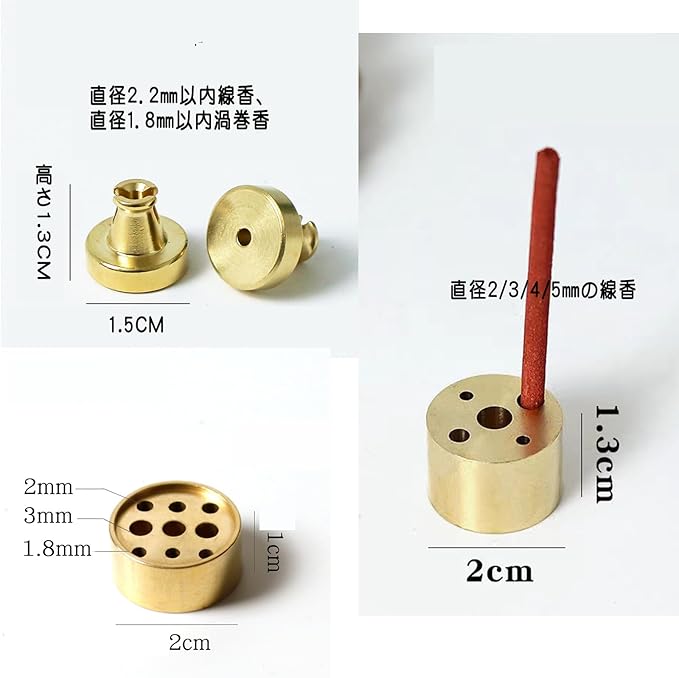 「サイズ」ミニ掃除ブラシ長約9cm;線香穴直径1.8/2/2.2/3/4/5mm;渦巻香直径1.8mm;詳しいサイズは左側のイメージをご確認ください。