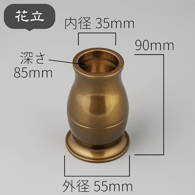 香炉:外径90mm(内径70mm) 高さ55mm・花立:外径55mm(内径35mm) 高さ90mm・蝋燭立:外径40mm(内径20mm) 高さ55mm