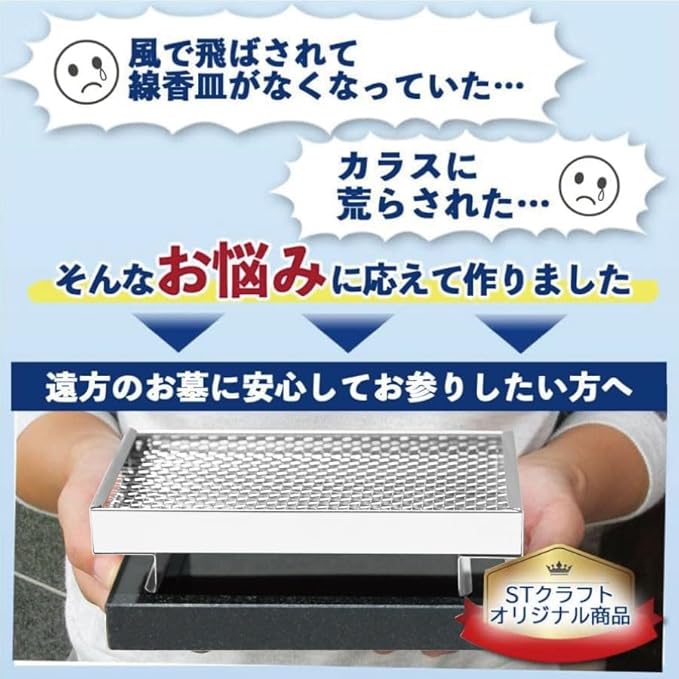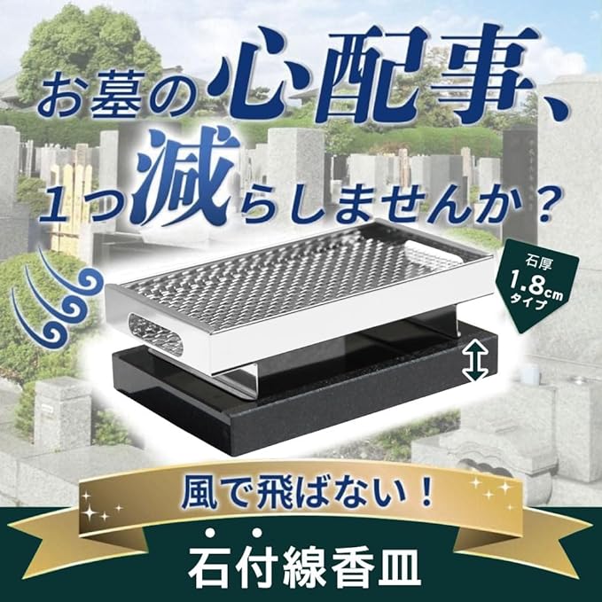 【お墓用】【御影石付き】線香皿 御影石の台座付きで風で飛びません。見た目の豪華に。シックな黒。お墓用 高級みかげ石製 台座 ステンレス線香皿付 お墓の見栄えが格段アップ おくだけ印象がグレードアップ SRSB-15-M