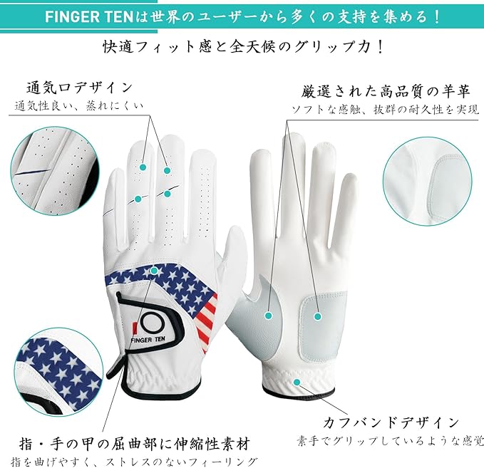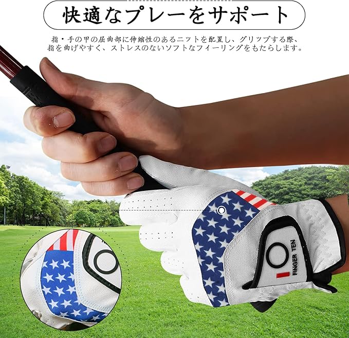 P2.強力グリップ:しっとりとした高級合成皮革と羊革で、強力なグリップ力を発揮。伸縮性のある素材により、幅広い動きが可能で、長時間のラウンド中の疲れを軽減します。