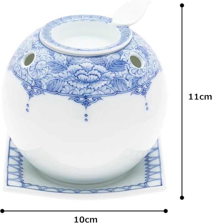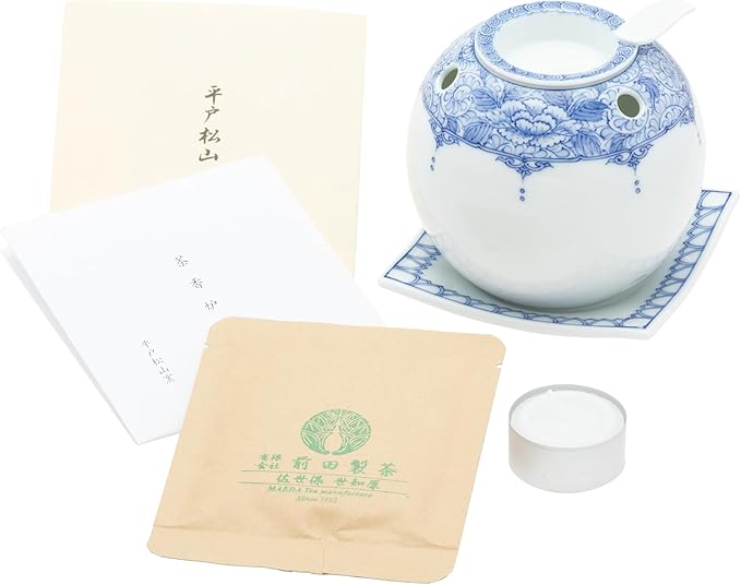 茶香炉 間取牡丹唐草 世知原茶10g入り 直径10 高さ11cm