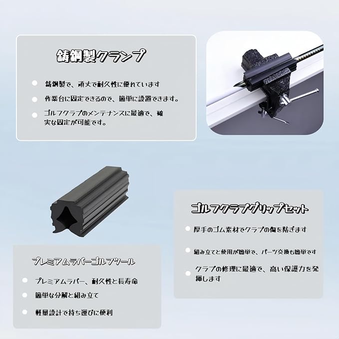 ゴルフ 万力、万力 卓上、ゴルフグリップ交換キット、ゴルフクラブ、グリップの交換、修理、工具キット、収納バッグ付き全てのクラブ対応