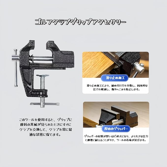高品質ゴム製ゴルフ 万力でクラブを安全保護:ゴルフグリップ交換仕様のバイスクランプは 24mm 厚の高耐久性ゴムで製造。クラブシャフトをしっかり固定し滑り止め効果を発揮し、交換作業中の傷や損傷を完全防止、高価なゴルフクラブのメンテナンスも安心してお任せください。