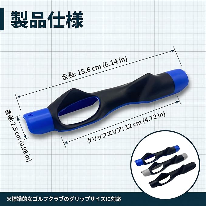 ① 正しい握り方を反復:ゴルフグリップの基本になる握りを毎回同じ基準に戻しやすいゴルフ練習器具。自己流のクセを見直したい方に。