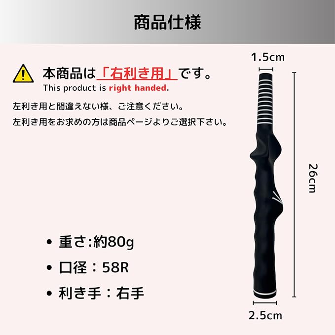 右利き用設計: 右利きのゴルファーに最適化された形状で、自然な握り方を身に付けることが出来ます