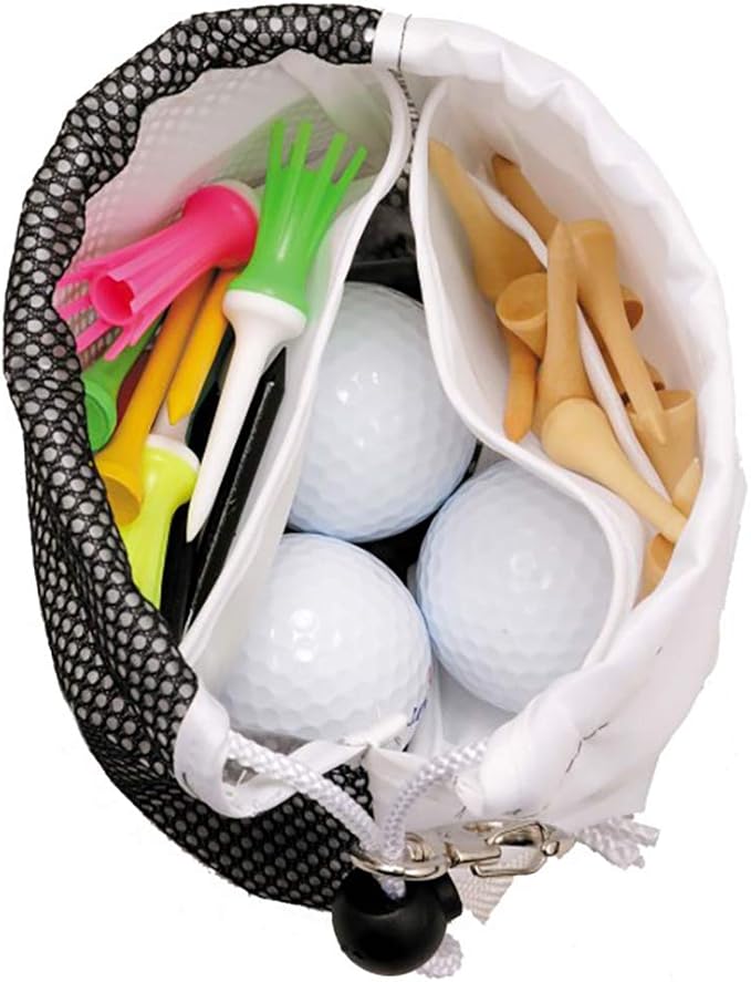 ダイヤゴルフ(DAIYA GOLF) メッシュポケット ラウンド用品 小物収納ポーチ ボールケース 仕分けポケット フック付き 黒・オレンジ AS-446