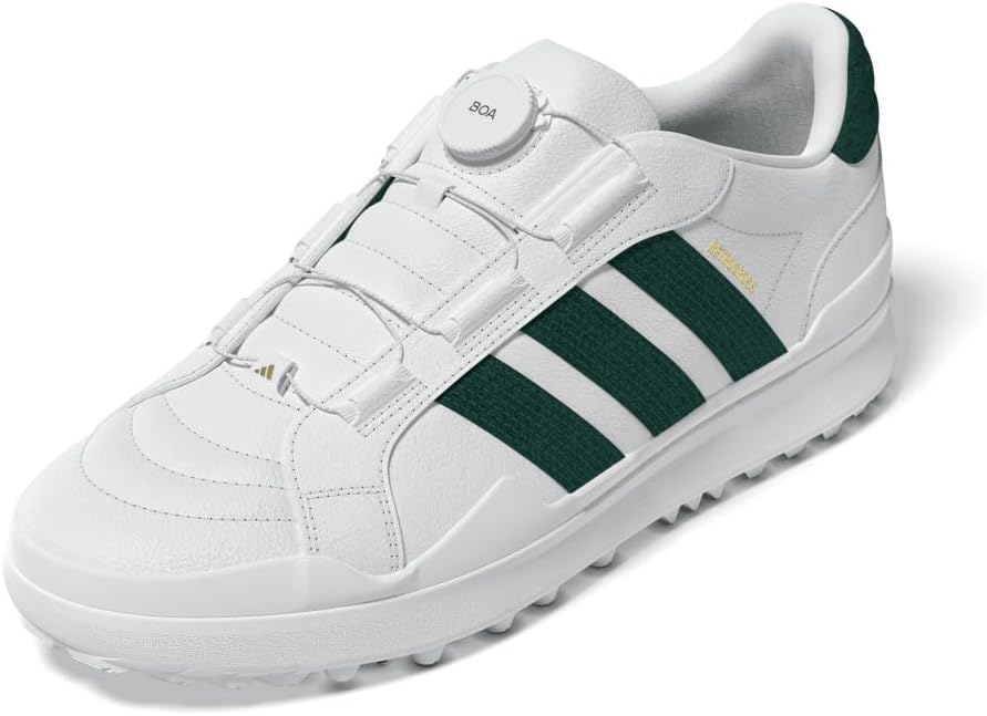 ストリートスタイルとハイパフォーマンスを融合した一足。洗練されたスニーカースタイルのデザインはカジュアルな服装にもマッチし、防水性と柔軟性に優れた天然皮革アッパーが快適な履き心地を実現。柔らかなシュータンに BOA フィットシステムを搭載し、安定したフィット感を実現。ミッドソールにはゴルフシューズ初搭載の LIGHTMOTION クッショニングを採用し、軽量かつ反発性に優れたソフトな履き心地を実現。アッパーのラバーサイドラップはデザイン性を高めつつ、同時にスイング時の横ブレを制御。また、合成皮革の3-ストライプスはステッチングと合わせて、BOAダイヤルを締めても天然皮革アッパーが伸びないように設計。最大の特徴である GRIPMORE テクノロジーは、強力なグリップ力を発揮。回転方向へのグリップ力に関してはADIPOWER SLをも凌駕する性能を実現。耐久性と粘り強さに優れたADIWEAR ラバーも使用し、あらゆる場面で高い汎用性を両立。機能性とスタイルを兼ね備えた、次世代のストリートスタイルゴルフシューズ。