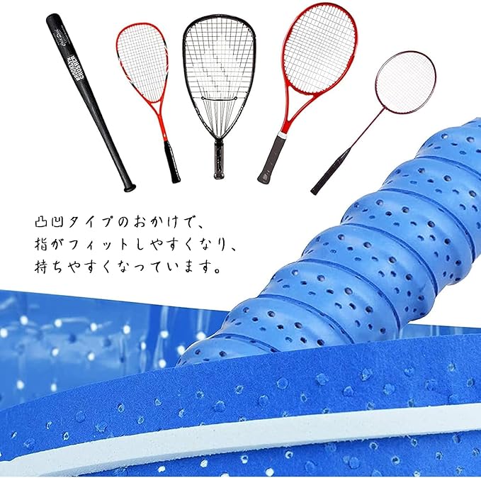 【古いグリップがよみがえる】巻くだけで完成!グリップ交換よりも簡単です。グリップを太くしたいときは、重ねて巻くだけなのでカンタンです!穴の開いたデザインは湿気を効果的に除去し、発汗しやすい選手に理想的です。