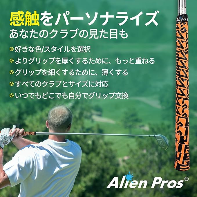 グリップを巻き直す手間はもうありません。Alien Pros ゴルフグリップラップテープを使用すれば、溶剤やキットを使わずに、簡単に剥がし、巻きつけるだけです。そのため、いつでも好きな時に、巻きなおすことができます。店舗にいく必要もありません。1分もかからずに、お好みのスタイルのまったく新しい、機能的なゴルフクラブグリップが手に入ります。