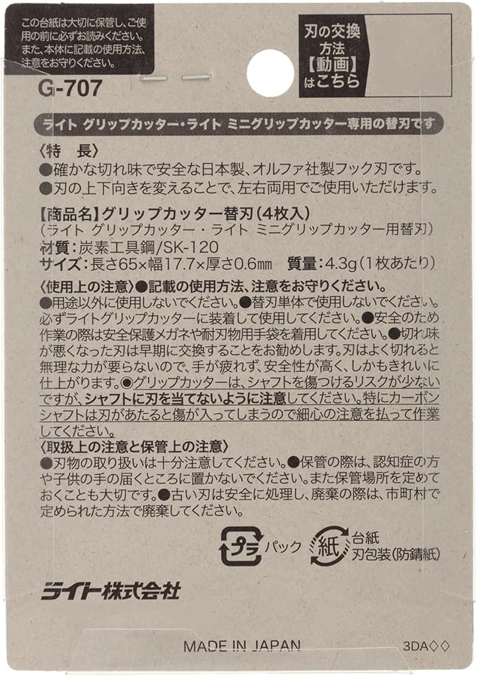 ライト(LITE) グリップ交換用品 グリップカッター 替刃 (4枚入) G707 ( 2)
