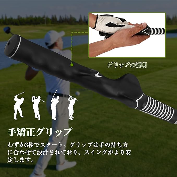 【手の形に合わせて設計されたプロ仕様のグリップ】クラブを正しく握らないと飛距離が出ない場合があります。この商品のゴルフ用品にはスイング矯正グリップが付いています。初心者の方は矯正グリップの使用をお勧めします。プロ仕様の矯正グリップを使えば、こっそりとゴルフグリップを練習し、最適なグリップ姿勢を身につけることができます。練習ではプロの基本的なグリップを体験したり、大会前夜にスイングを確認したいときに自宅でグリップを練習したりすることもできます。