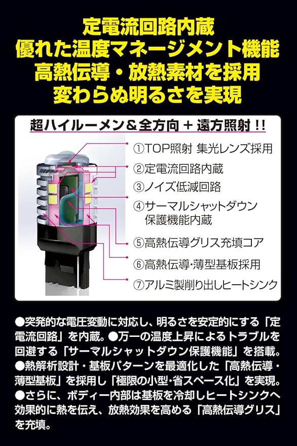 ■温度マネージメント機能・高熱伝導・放熱素材を採用し、超ハイルーメン&長時間変わらぬ明るさを実現
