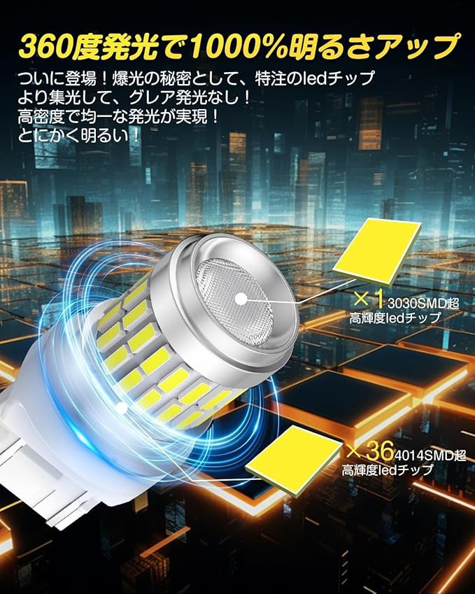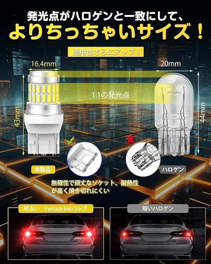 【360 全方位発光&瞬間起動 – 3倍明るさで視認性アップ!】Perrace T20 LED ダブル ブレーキランプは、超高輝度LEDチップを搭載し、純正ハロゲンの約300%の明るさを実現!360 全方向に均一に発光し、ムラのない美しい照射で高級感を演出。ブレーキを踏んだ瞬間、はっきりとした光が後続車に伝わり、追突リスクを軽減! 夜間や悪天候時の運転もより安全に。