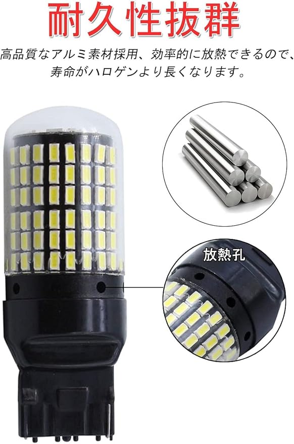 放熱性に優れ:このt20 LED 7440バックライトは本体は耐熱性と放熱性に優れた航空用アルミ素材と専用なガラスファイバー基板を使用する事により、チップの使用寿命を長引かせる事が可能となりました。