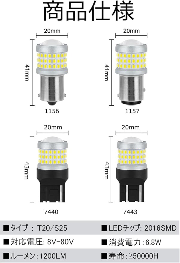 高輝度 拡散照射仕様:この t20 led バックランプ は高輝度美光照射の2016SMD LED素子69連搭載。超拡散レンズ付きで照射距離を伸ばすことに成功しました。全方位照射仕様。昼間の環境で十分確認出来る明るさと拡散性、純正ハロゲン球より明るいのに省エネ、明るさは約3倍に大幅アップしました。