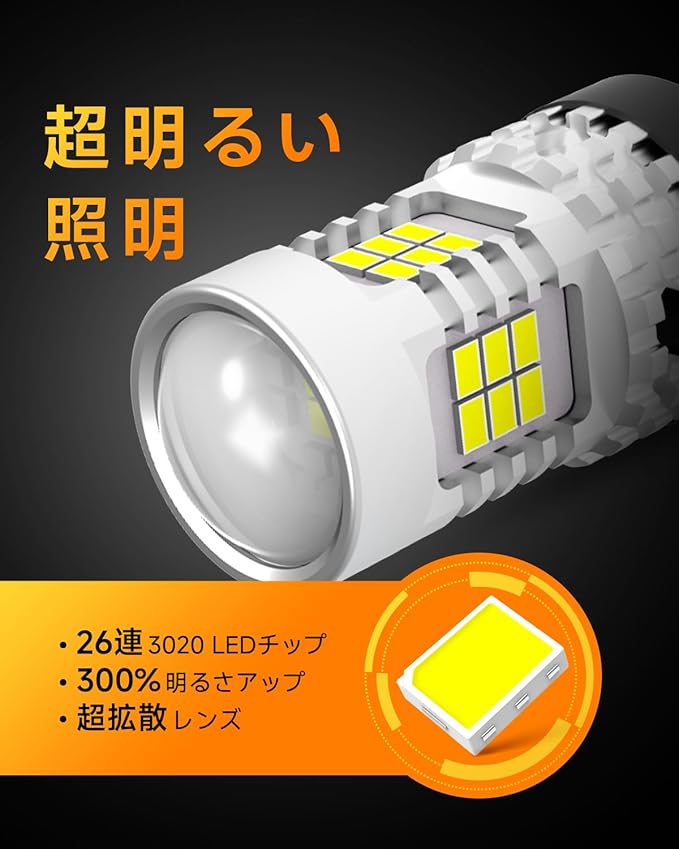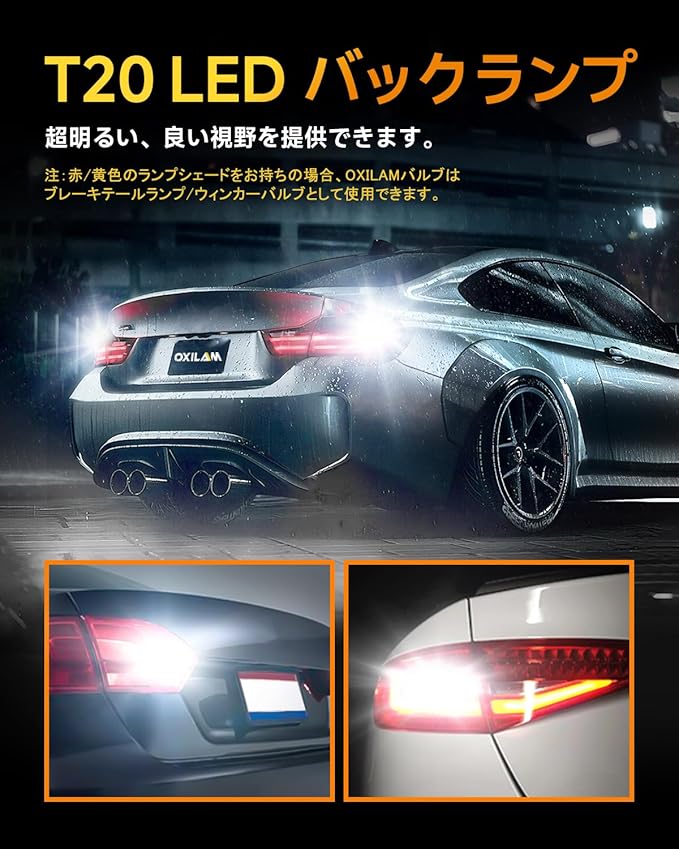 【超高輝度のバックランプ】OXILAM T20 ledバックランプバルブは高発光効率の3020SMD素子26個搭載して、純正ハロゲンと比較して、最大で約3倍の明るさUPが可能になって、極の明るさが実現します。より遠くに照射することができて、サイドミラーやルームミラーに映し出される映像が見やすくし、安全性が大幅に向上します。