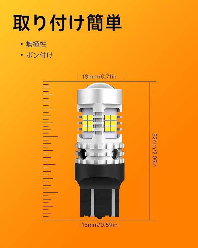 【防水性能&取り付け簡単】このT20 ledはIP65防護レベルで、有効的な防水素材を採用し異なる天候にも使用でき、安定性がよくて、有効的に雨水を防止しより快適に運転します。安心して使えます!-40℃~+85℃の環境でも瞬間作動出来ます。無極性で正負極性を気にせず装着可能です。T20ダブルLEDバルブのソケットはハロゲンとほぼ同じサイズなので、取付簡単、差し込むだけで完了、余計な手順はなし。※バイクと大型トラックに取付不可です。