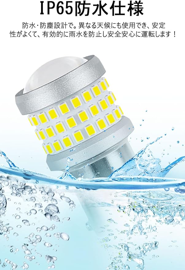 高輝度 拡散照射仕様:この t20 led ウインカー は高輝度美光照射の2016SMD LED素子69連搭載。超拡散レンズ付きで照射距離を伸ばすことに成功しました。全方位照射仕様。昼間の環境で十分確認出来る明るさと拡散性、純正ハロゲン球より明るいのに省エネ、明るさは約3倍に大幅アップしました。