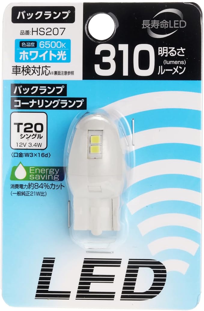 PIAA バックランプ/コーナリングランプ用 LED 6500K 12V 3.4W 310lm T20シングル ECO-Lineシリーズ 車検対応 1個入 HS207