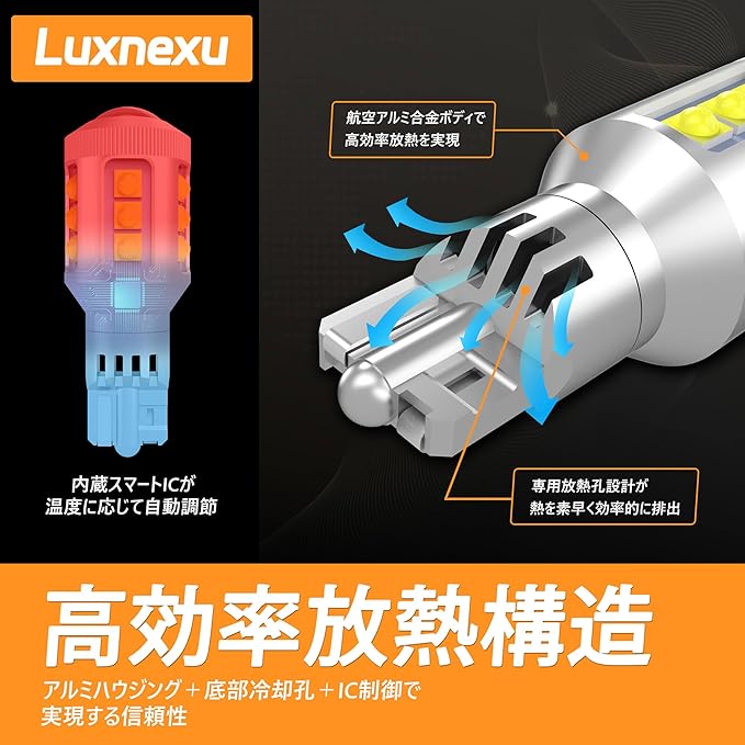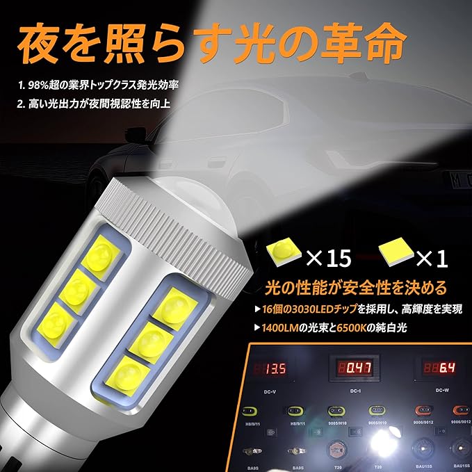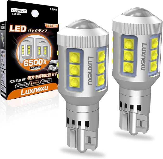 T16 LED バックランプ 爆光 1400lm 高輝度 車検対応 CANBUS キャンセラー内蔵 無極性 6500K 50,000時間寿命 DC12V車専用 2年保証 2個セット