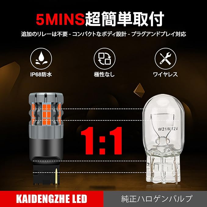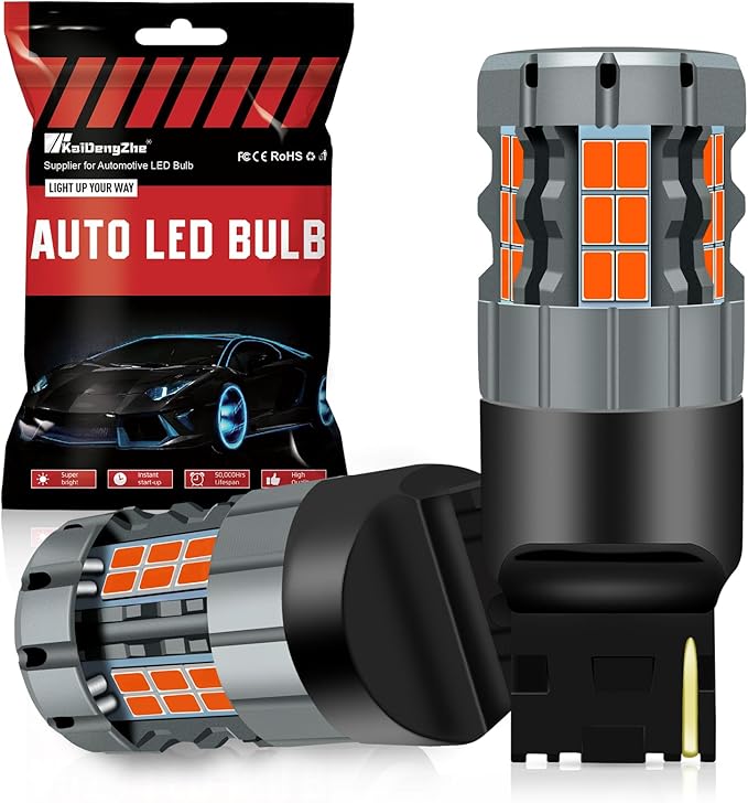 【無極性&取り付け簡単】KaiDengZhe 7440 W21W T20 LEDブレーキランプ電球は1:1ハロゲンランプ設計を採用し、古いハロゲンランプと直接交換可能で、改造は不要です。標準プラグを採用しており、車両の電球ソケットに完璧に適合します。0.01秒で瞬時に点灯し、予熱時間不要です。以下のいずれかの症状が発生した場合、お気軽に当社までご連絡ください:1. 電球が連続して点滅する;2. メーターパネルから警告音が鳴る;3. ラジオに干渉が発生する;4. いずれかの電球が点灯しない;5. 電球が車両と互換性がない。
