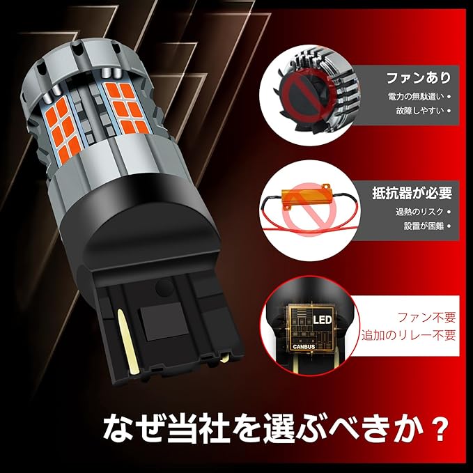 【耐久性&長寿命】W21W LED電球には、過熱や損傷を防ぐための恒流ICドライバーとスマートチップが内蔵されています。航空用アルミニウム素材を採用し、優れた放熱性能を実現。独特な凹凸デザインにより放熱面積を拡大し、電鍍加工された外装は抗酸化性能を向上させ、熱の発生を低減します。安定した入力電流保護回路により、安全な温度範囲と明るさの安定性を確保し、ハロゲン電球よりも安全です。アルミニウム製取り付けプレートにより、さらに耐久性が向上しています。今すぐ車のターンシグナルライトをアップグレードし、より安全で信頼性の高い運転体験をお楽しみください。