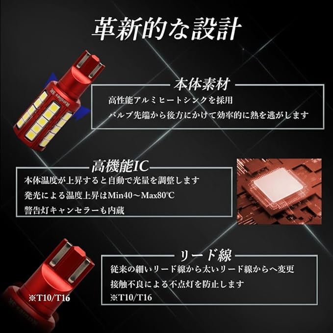 T10/16 サイズ 全長39mm 先端直径14mm ※T10でご利用の場合(ポジションランプなど)取り付けレンズ内のクリアランス確認必須