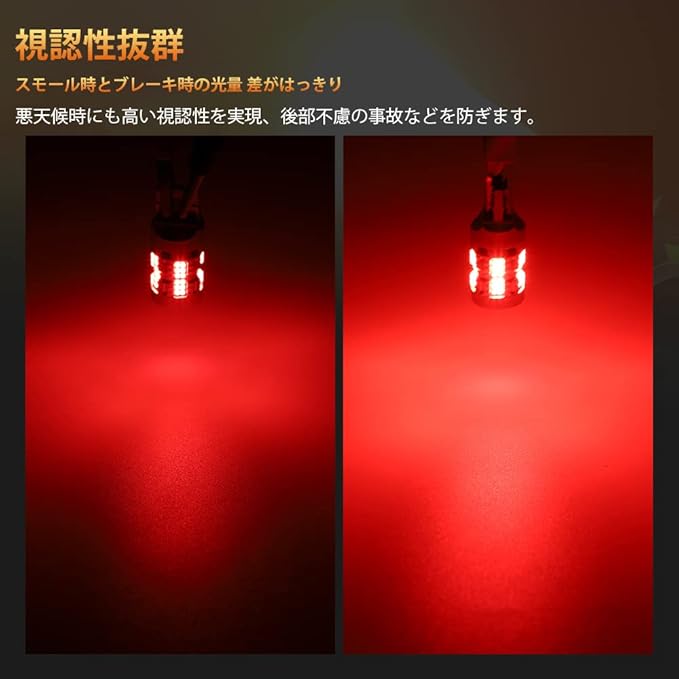 【高輝度、360度発光】高品質の2016SMDチップ66連を搭載、全体が均一に発光し、360度全方位に照射できます。日中でしっかりと視認できる明るさ、夜間や雨天などの悪天候には視界が悪くなる時の危険回避に効果を発揮し、後部不慮の事故などを防ぎます。明るくて鮮やかな発光、より快適でよリ安全な走行をサポートします。