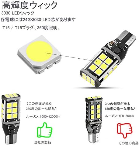 LEDバックランプ 爆光 1200ルーメン T16/T15 W16W T10 3030 後退灯(4個セット)Canbus キャンセラー内蔵 無極性 DC12V用 50000時間以上寿命 ホワイト バックライト 24連