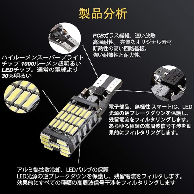 T16 T15 W16W LED バックランプ 爆光 12V汎用 45連4014SMD 無極性 後退灯 テールランプ バックライト 50000時間以上寿命 ホワイト (2個セット)