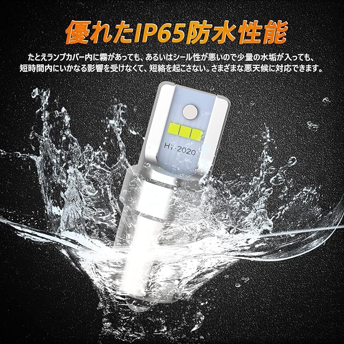 優れたIP65防水性能を加えて、たとえランプカバー内に霧があっても、あるいはシール性が悪いので少量の水垢が入っても、