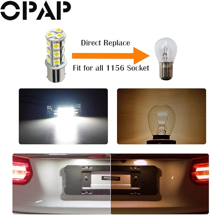 OPAP S25 LED シングル ウインカー バックランプ 高輝度 無極性 ピン角180 1156 P21W BA15S G18 後退灯6500K ホワイト2個入