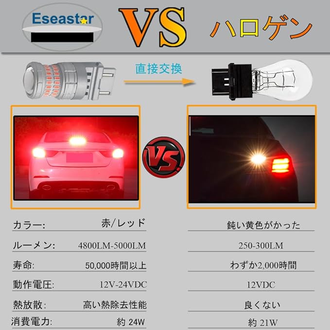 ▼ 【商品 スペック】:電圧:DC 12V-24V (DC 12V / DC 24Vのハイブリッド車にも対応できます。)ルーメン:5000LM、発光カラー:レッド; LEDチップ:SMD4014X48個(1個バルブ) 適応車種:バイク/軽自動車/普通車/ハイブリッド車等)。
