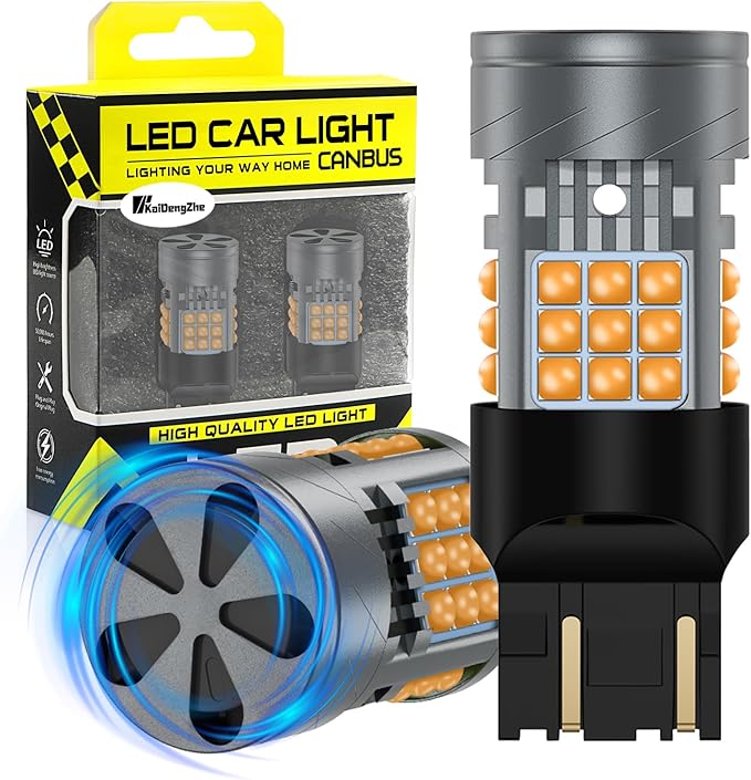 KaiDengZhe T20シングル7443 LED イエロー ダブル球 W21/5W LED ウインカー バルブ 明るい6倍 ハイフラ防止 抵抗 キャンセラー 内蔵 無極性 DC12V 24V車検対応 2個入り