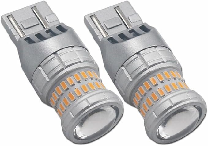 7443 WY21W T20 LEDダブル ウィンカー バルブ ハイパー防止点滅なし 12V-24V キャンセラー内蔵 ステルス車検対応、アンバー 爆光、 2個入り