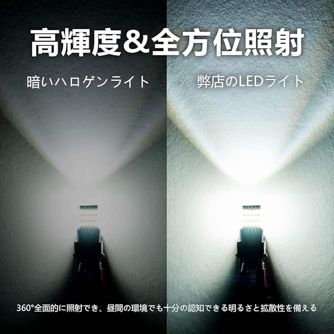 【コスパ抜群】T20 シングル球 LED バックランプ、高輝度4000LMの明るさ、純白の光ではなく、光は均一で、透亮で、鮮明で、より快適に見えます。、全方位LEDの設計、死角がなく、光の照射効率を最大限に発揮します。当店の車ライトはオリジナルの車ライトより3倍以上明るいです。電気消費量は元のランプの7分の1しかないです。