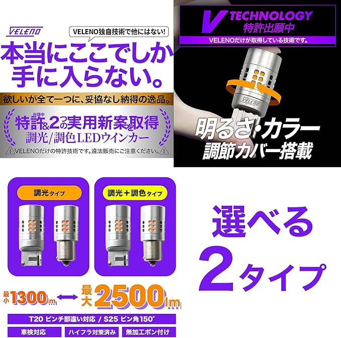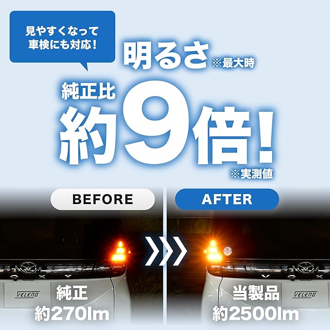 【当製品の魅力】スライド式で簡単に調光可能! ウィンカー 純正比9倍!実測値で1300-2500lmの調光可能な VELENO オリジナル開発の次世代ウインカーです。 (ハイフラ対策済み & 冷却ファン搭載の LEDウインカーはVELENOの実用新案取得済み商品です)