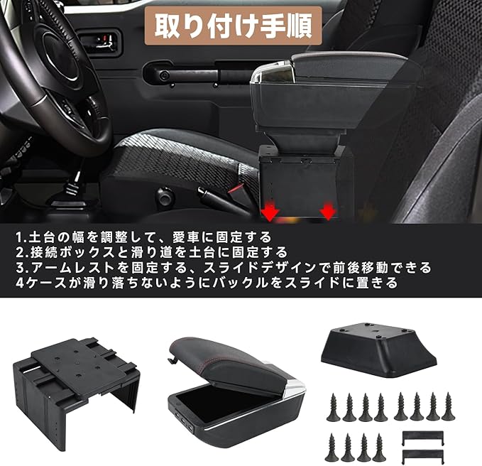 【DIYでどんな車種も!?アームレスト収納ボックスを後付け】このアームレスト収納ボックスは、土台の幅が可変するので様々なセンターコンソールの幅に合わせることができます。 また、センターコンソールがない車種でも、自作の台に取り付けたりと自由な設置が可能になります。