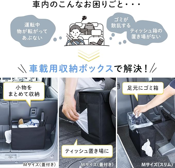 サンワダイレクト コンソールボックス 汎用 幅18.5cm ティッシュボックス付き 折りたたみ 車内 収納 ボックス トランク Mサイズ 蓋付き 200-CARBG007