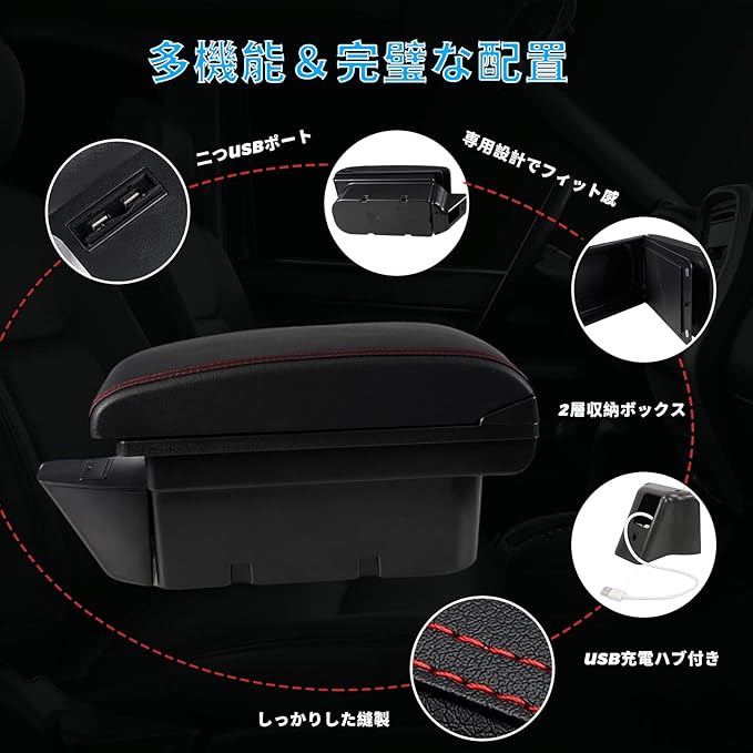 【デザイン性アップ】運転席からすぐにアクセスできる収納スペースとして使えるだけでなく、車に最適な機能を付加することができます。肘おきクッションが前に5CMまで動き、肘を置きやすい位置に調整できます。長距離ドライブなどの疲労軽減に役立ってくれるのが、運転の手を休めるアームレストです。