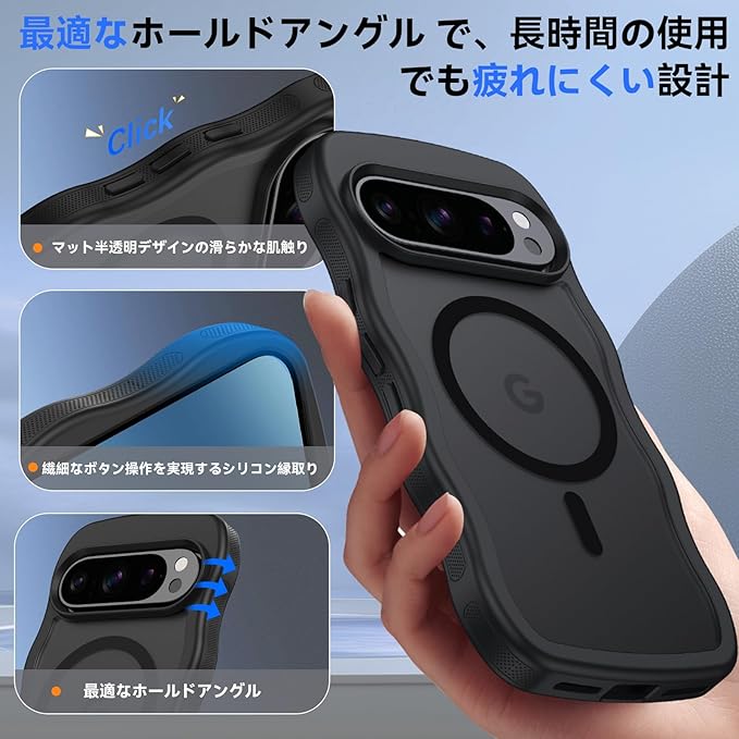 GUAGUA google pixel 10 pro xlケース MagSafe対応 ウェーブ ピクセル10pro xl ケース かわいい ソフトうねうね 滑り止め 人気 韓国 おしゃれ マグネット 車載ホルダー対応 半透明 指紋防止 耐衝撃 かわいい グーグルピクセル10 proxlカバー