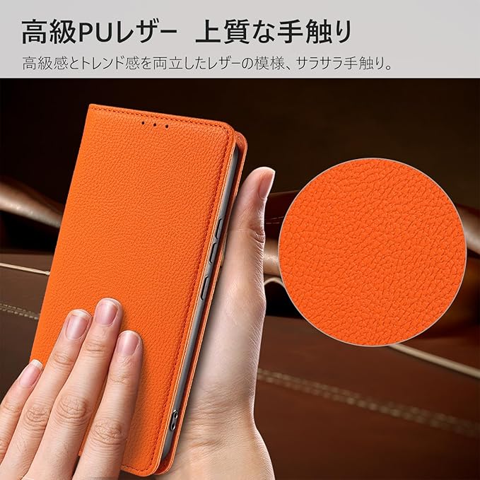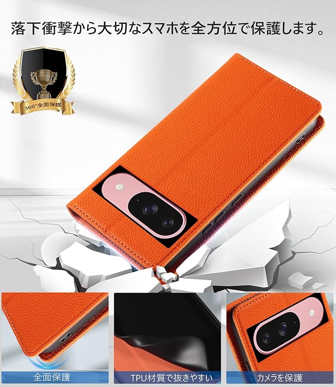 MINIKA Google pixel 10/10Pro 用 ケース 手帳型 ストラップ付き 高級レザー ピクセル10 ケース グーグルピクセル10 携帯カバー おしゃれ スマホケース カード収納 横置きスタンド機能 内蔵マグネット 開閉式 両面 360度 全面保護 耐衝撃 上質な手触り 擦り傷防止 汗や指紋防止 耐汚れ(オレンジ)
